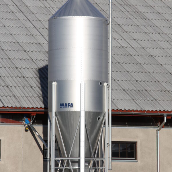 MAFA UNIK er en udendørs fodersilo fremstillet i Sverige, konstrueret til at imødekomme de specifikke krav i moderne landbrug. Den er bygget af en højstyrke stålplade belagt med Aluzinc, et materiale der giver en dokumenteret længere levetid end traditionelt galvaniseret stål. Siloen leveres færdigmonteret fra fabrikken i Ängelholm og er omfattet af en 10-års garanti mod gennemtæring. Dette gør den til en solid, langsigtet investering med en lav afskrivning og en høj gensalgsværdi.