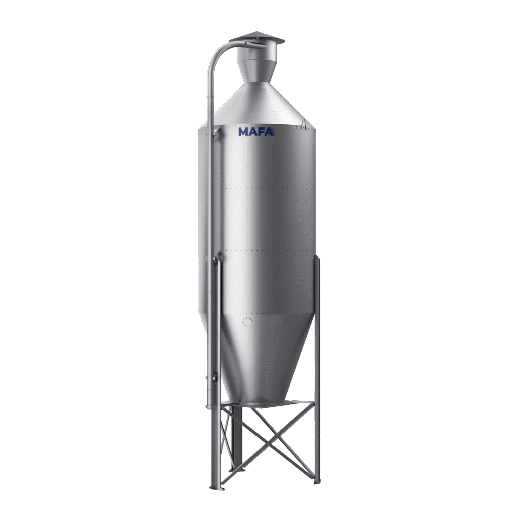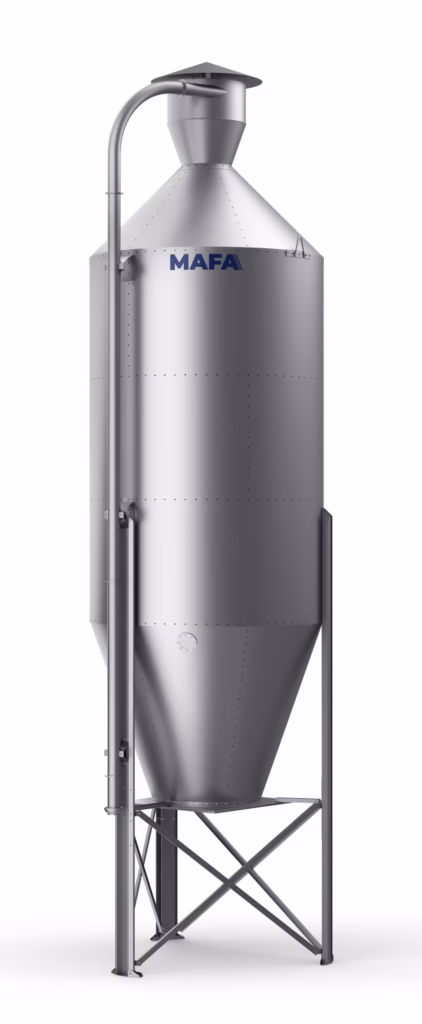 MAFA UNIK Small er en robust og alsidig fodersilo, der fungerer som en central del af gårdens foderanlæg, uanset om det er til svinestalde, kvægstalde eller fjerkræproduktion. Standardmodellen er dimensioneret til materialer med en vægtfylde op til 750 kg/m³, men kan leveres i en forstærket udgave til tungere materialer som f.eks. mineraler eller valset korn. Med et bredt program af sugekasser og tilbehør kan siloen integreres i de fleste foderfremføringssystemer.