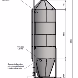 Den er designet til at fungere som mellemlager og er derfor ikke udstyret med cyklon og indblæsningsrør. I stedet har siloen en topplade med 160 mm runde tilslutningshuller til påfyldning.