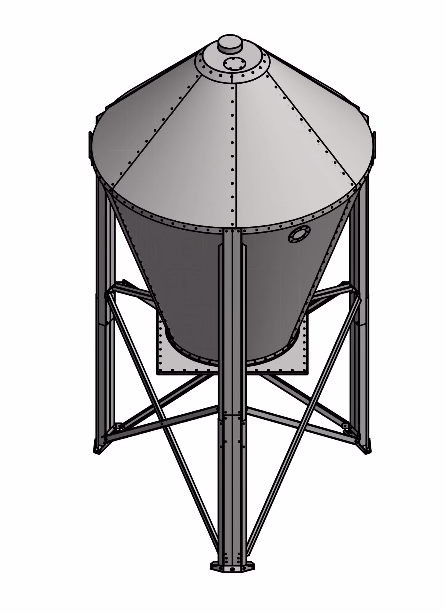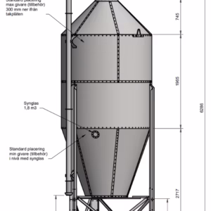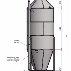 Den er designet til at fungere som mellemlager og er derfor ikke udstyret med cyklon og indblæsningsrør. I stedet har siloen en topplade med 160 mm runde tilslutningshuller til påfyldning.